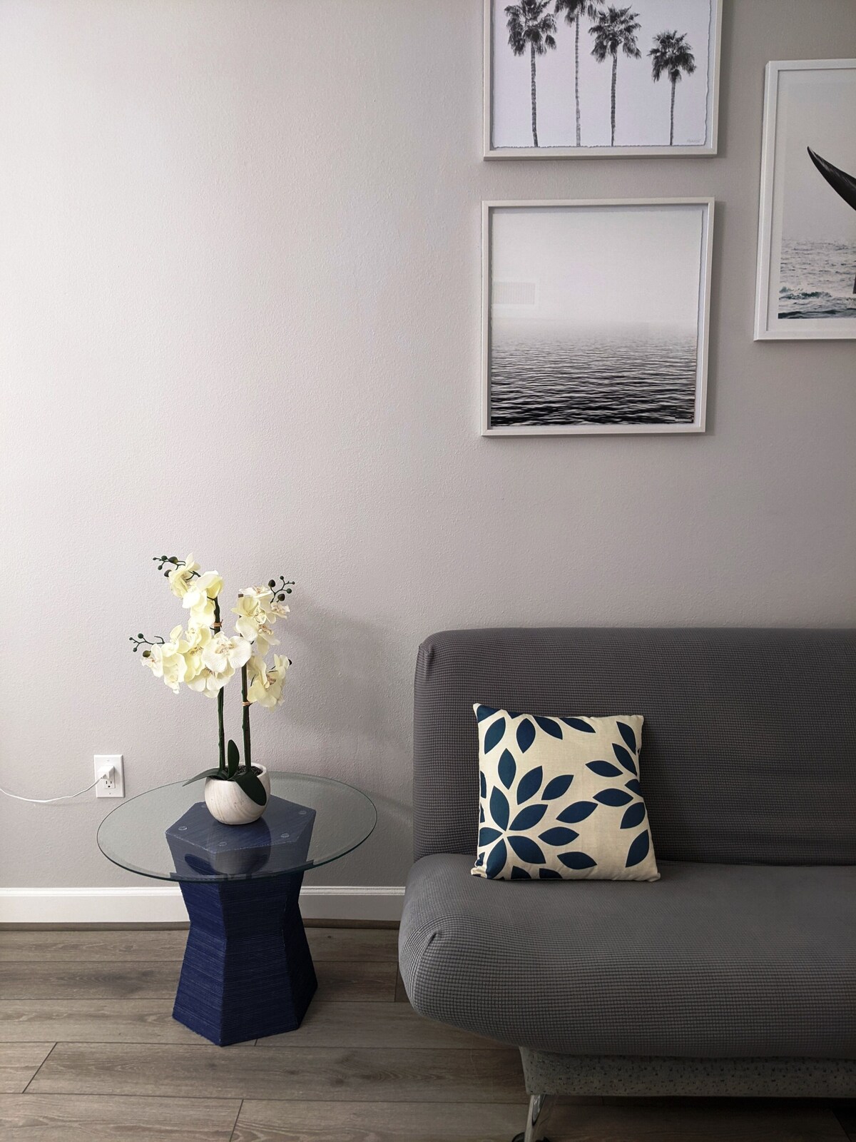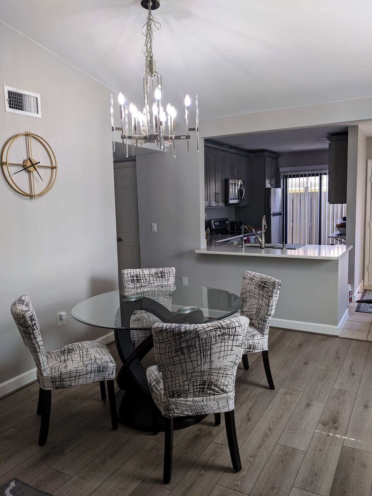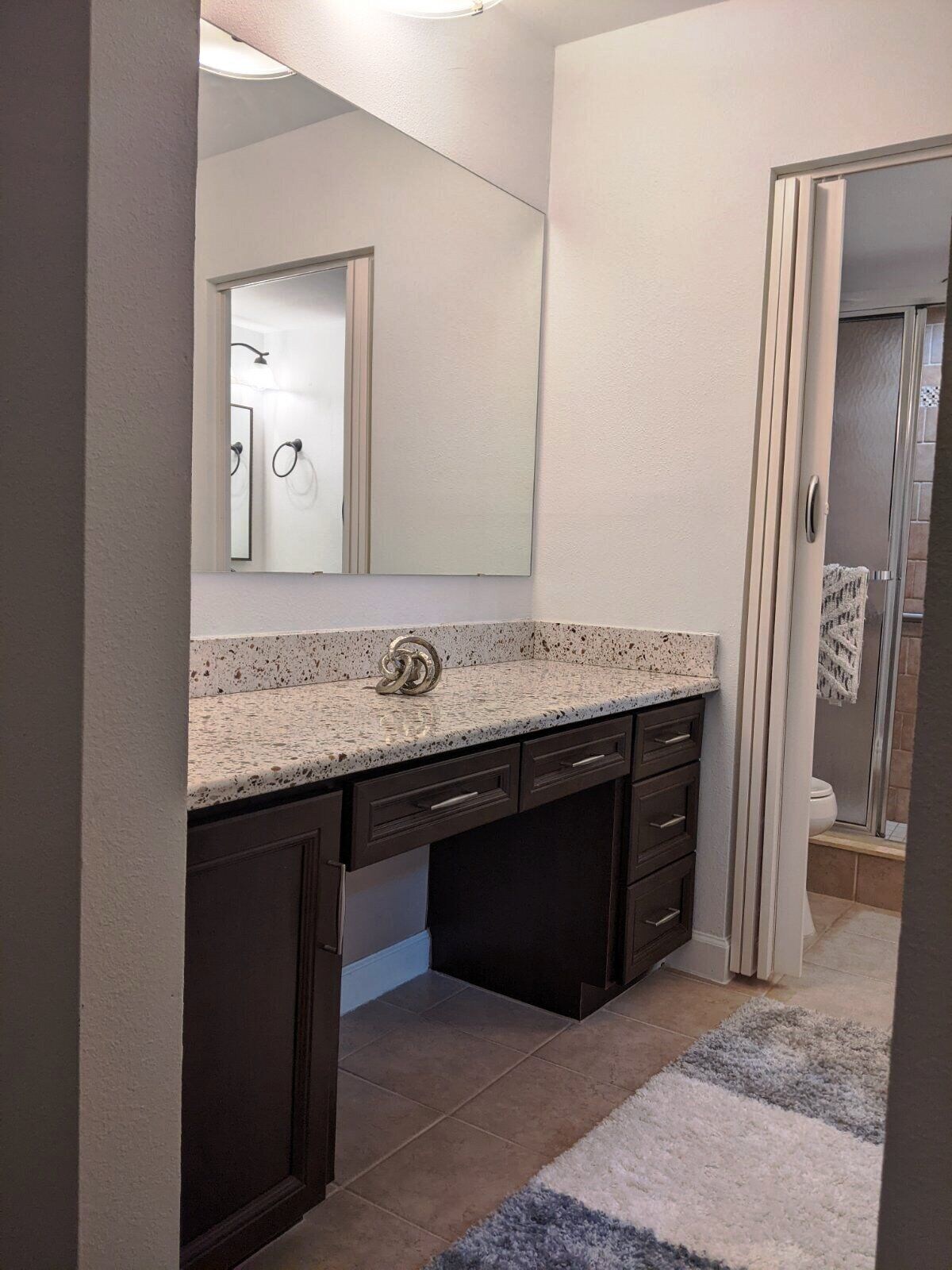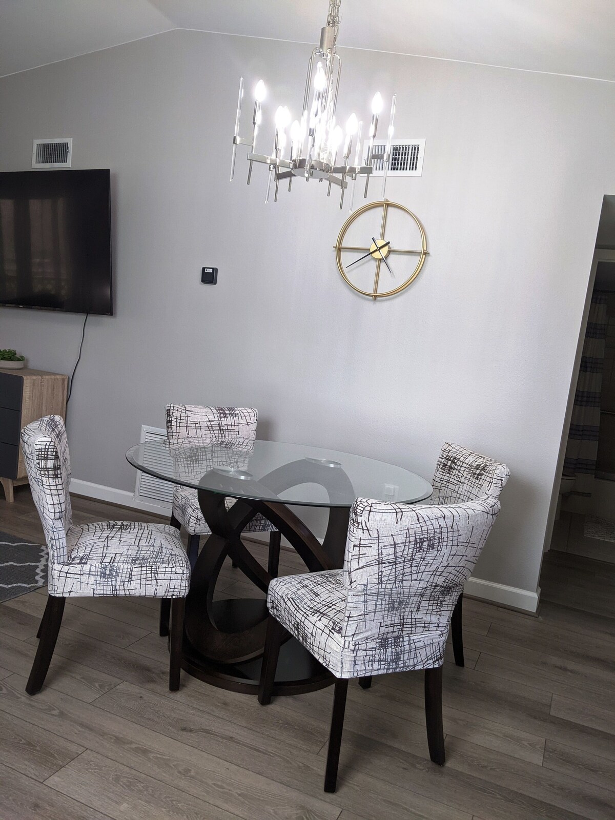 This condo has just been remodeled so you can feel very comfortable in this clean and airy space. It has brand new and beautiful kitchen cabinets with quartz countertops, a fully equipped kitchen (dishes, cups, glasses, utensils, etc.), and includes small appliances (dishwasher, mixer, air fryer, etc.), and new LVP quiet bamboo floors throughout.